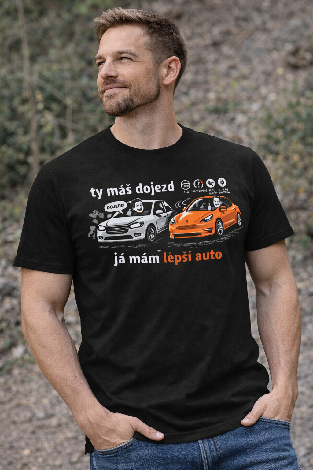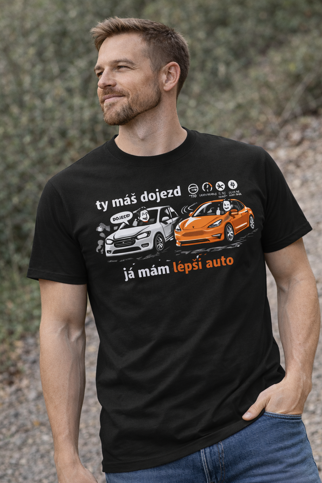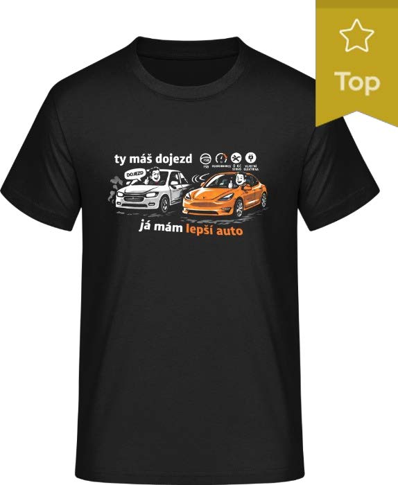Ty máš dojezd. Já mám lepší auto. Tričko, které shrnuje všechny EV debaty do jedné věty ⚡
